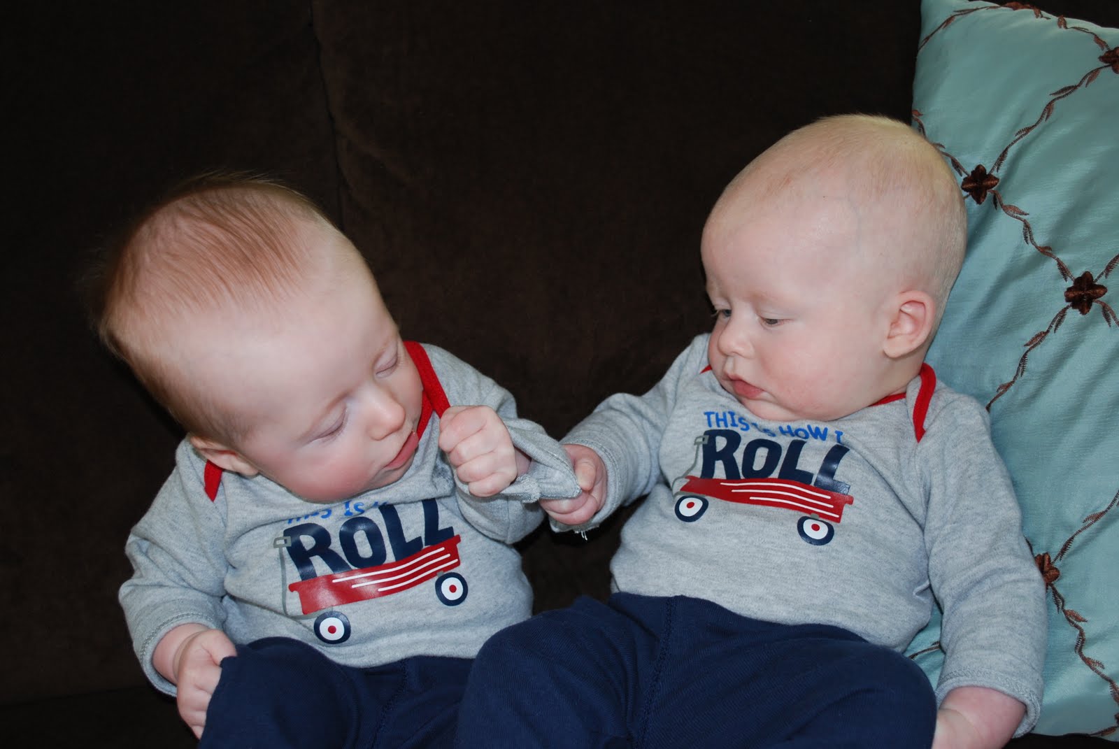 We all decided instead of exhanging gifts this year, we would just buy things for the boys and I'm glad we decided to do that. They're only 4 months old, but they got a lot of toys that they can play with when they get to be around 6 months old. They also got a ton of teethers, rattles, and some books. My parents also got each of the boys a savings bond, which will definitely come in handy later (around college time). They boys also got several wonderful gifts from other family members as well as some of our friends. We also used the money we saved by not getting gifts for my family to get the boys some toys and two new high chairs now that they're starting on rice cereal and it won't be long before they're eating solid foods.
