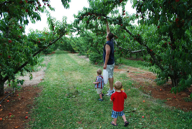 We had a very low key 4th of July this year. It's been a crazy couple of weeks and we just wanted to take it easy. I didn't even get the boys special 4th of July shirts.:( We went to the gym in the morning and then after the boys naps, we went to the peach orchard to pick peaches and enjoy some peach frozen yogurt. When we got home, Greg grilled out hamburgers and hot dogs for us and the boys cooled off in the pool. We didn't go to see fireworks or anything this year, but I'm looking forward to going next year.